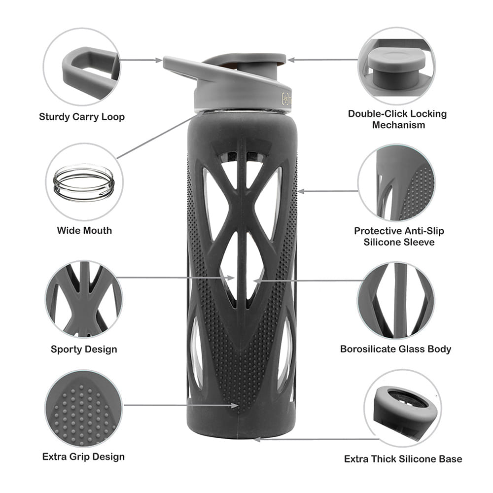 Our high borosilicate bpa-free glass bottle is crystal clear, 100% toxins free & won't leach any chemicals into your drink. Your water stays fresh without any lingering taste- just cool hydration your way!