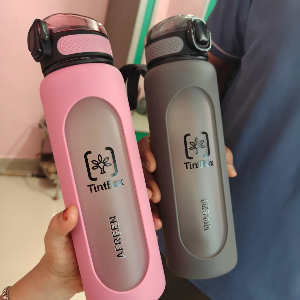 Lightweight, leak-proof, and stylish, TintBox motivational bottle fits seamlessly into your bag or lifestyle. Ideal for travel, gym, office, or daily commutes- hydration has never looked or felt this good.